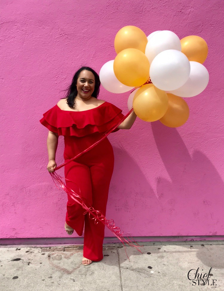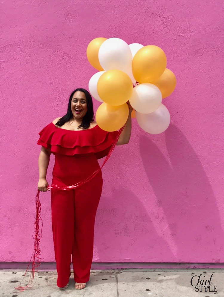Outfit details: Jumpsuit: Fashion Nova Curve | Shoes: A’gaci