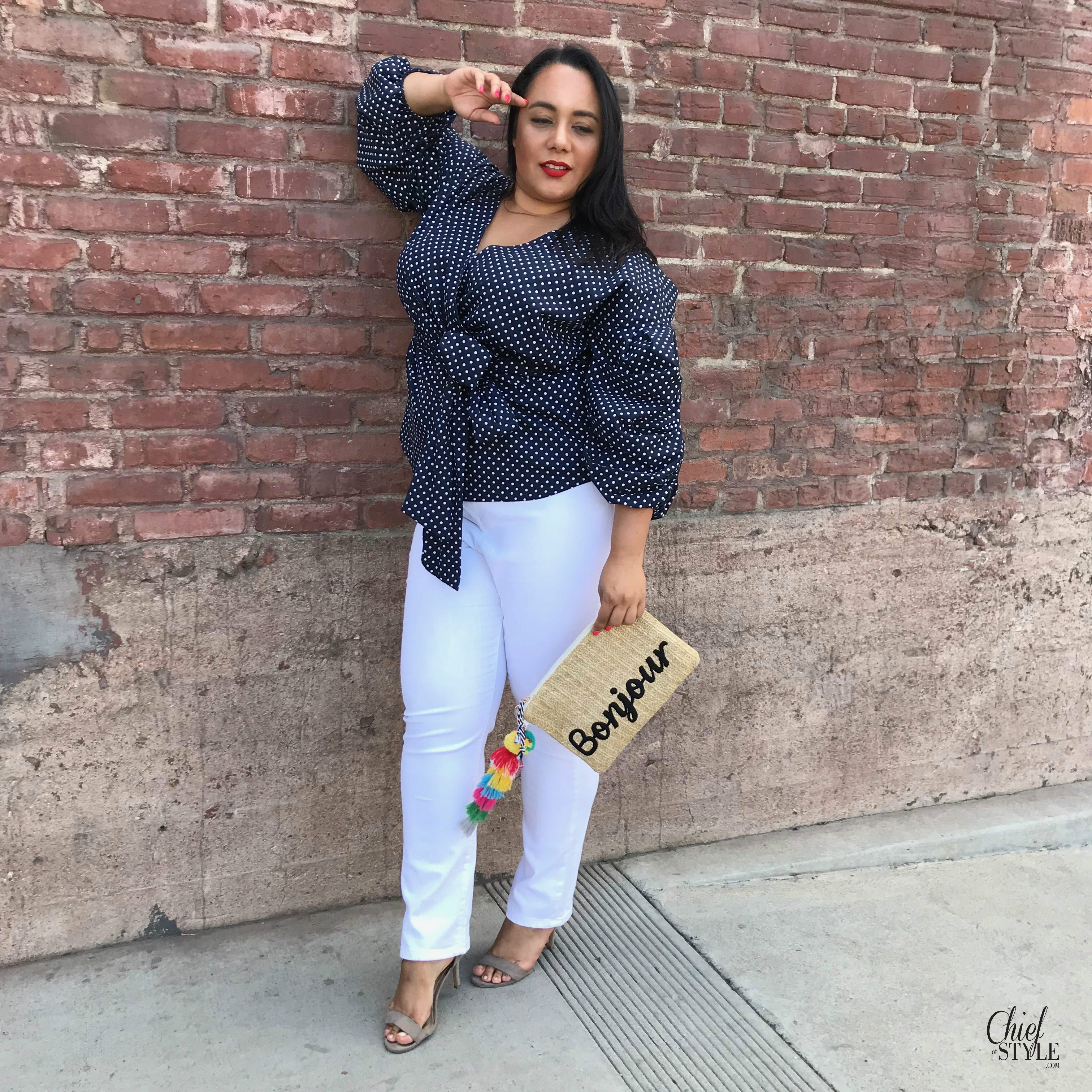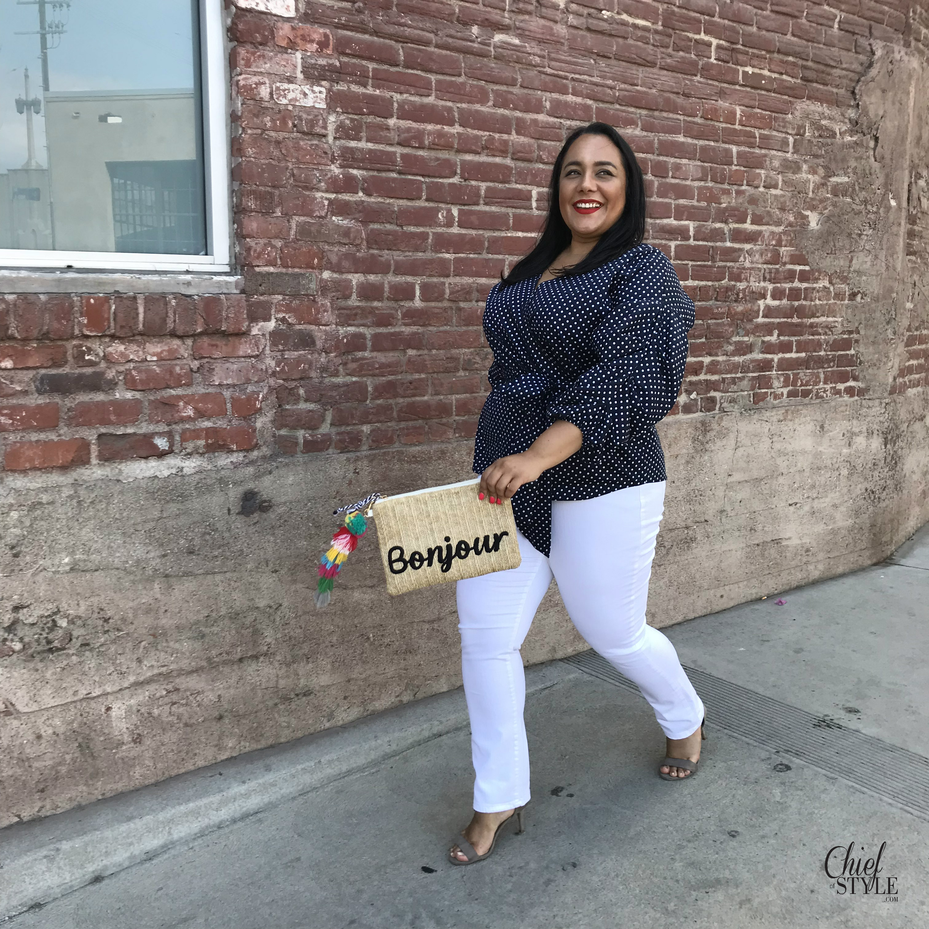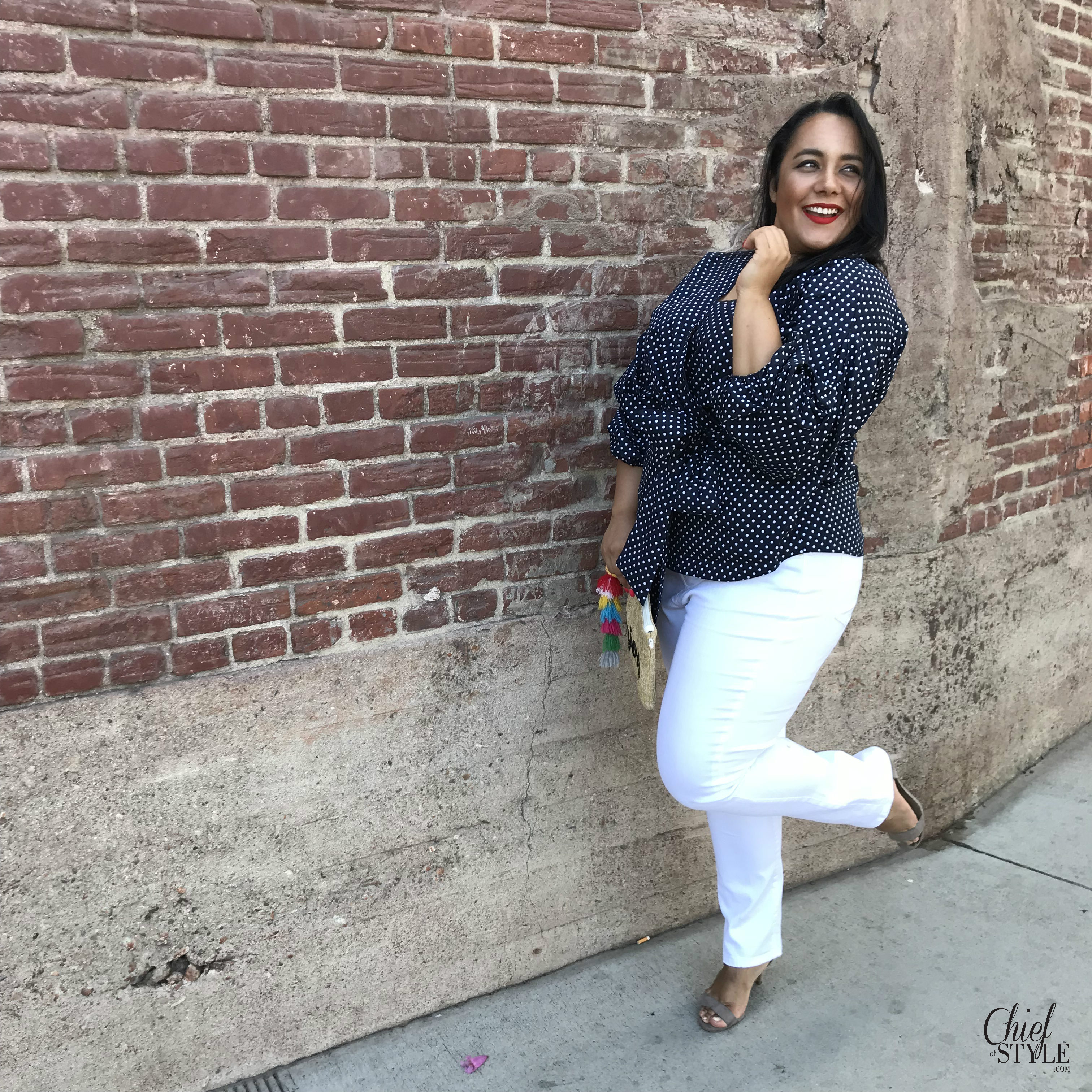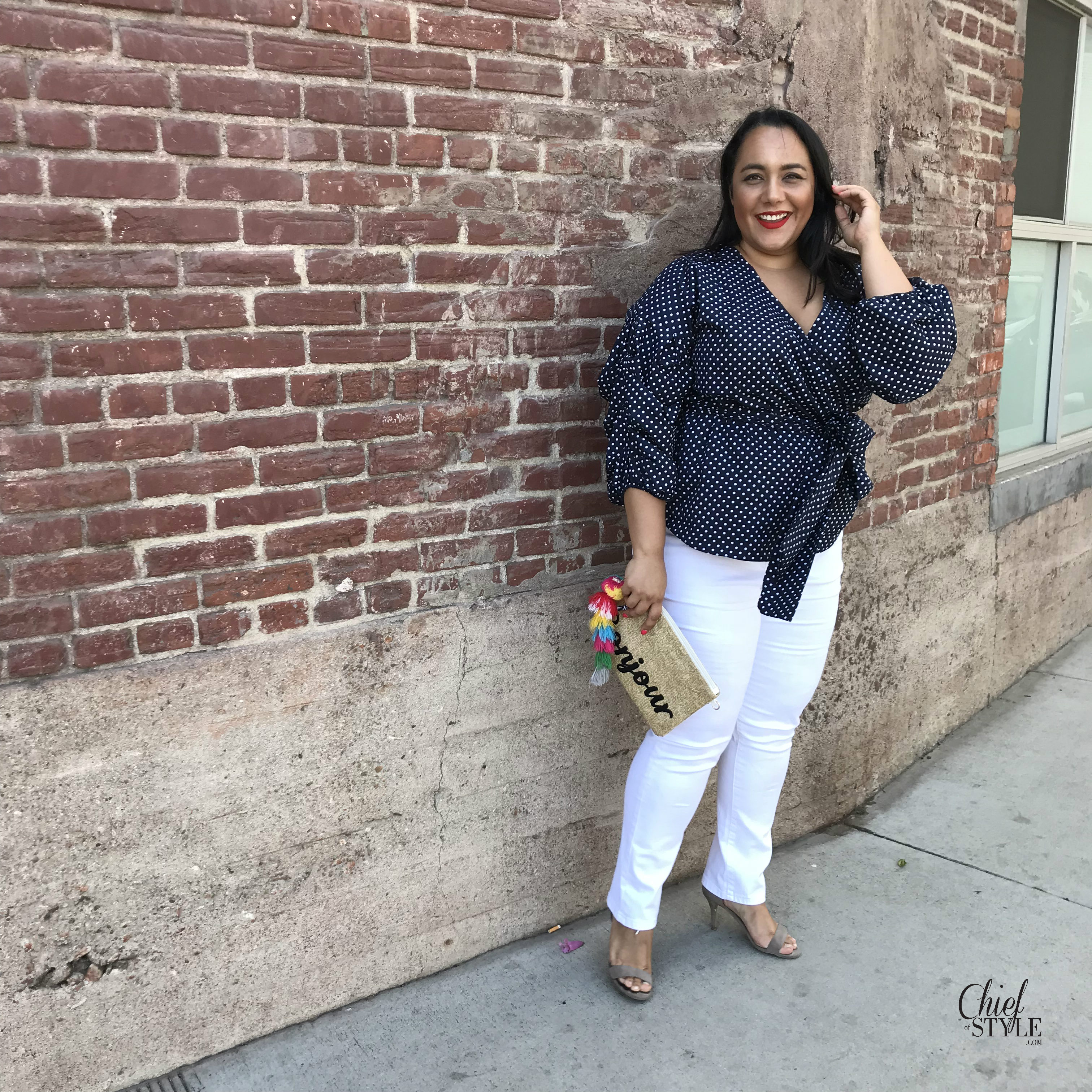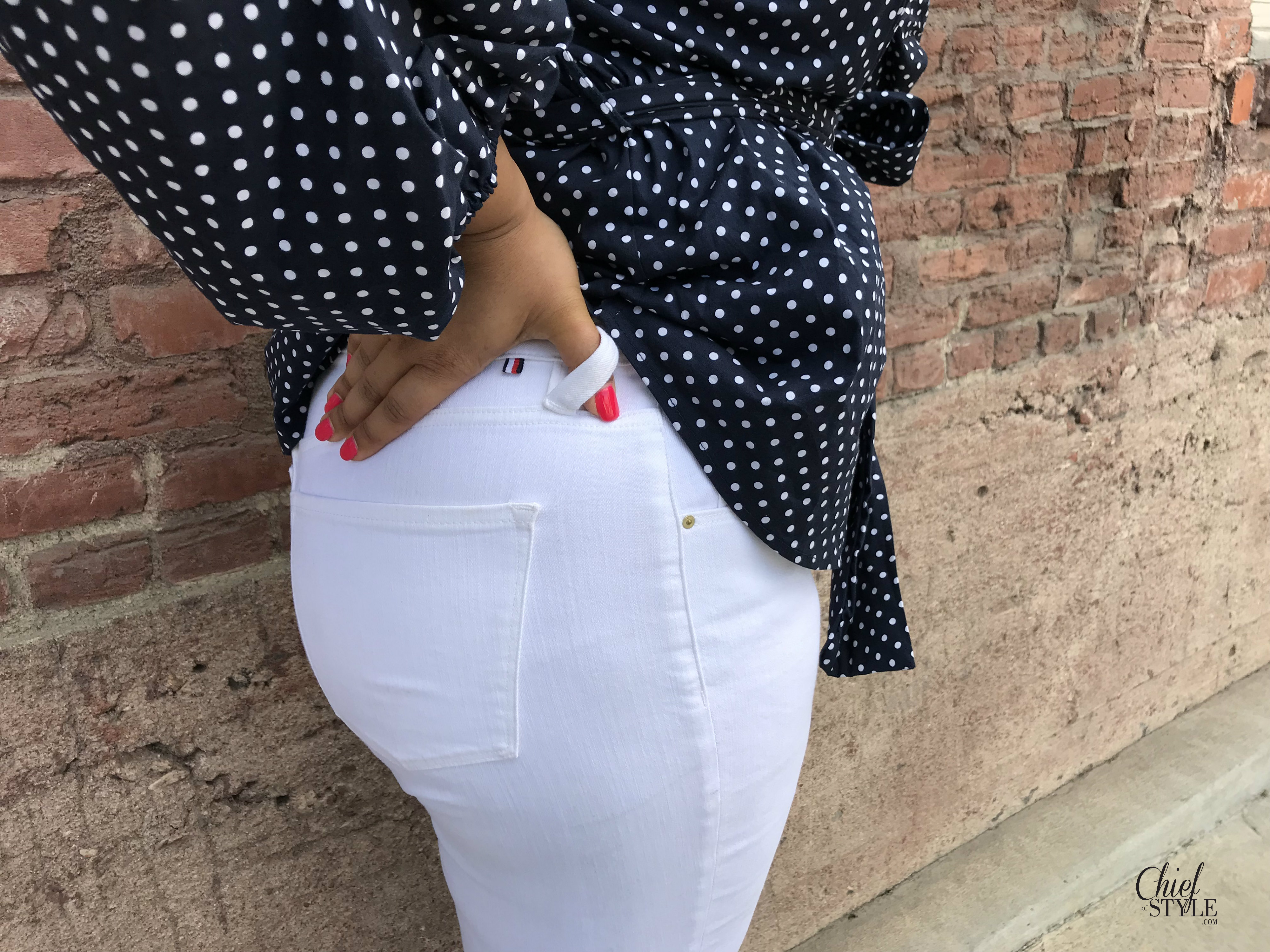 If so, you can imagine my excitement when I found these straight-leg jeans by Tommy Hilfiger Plus at Macy‘s . They’re perfect for a classic, casual summer weekend look. You can pair them with your favorite statement top like this polka dot blouse I’m wearing. Or florals, stripes, animal print or or or…the combinations are truly endless.